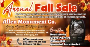 * A memorial service for Geraldine “Jeri” Ballard, 85, of Summerset, S.D., formerly of Valentine, March 15, in the Valentine Presbyterian Church with inurnment in the Mount Hope Cemetery. Jeri Ballard died March 4 in the Friendly Horizons of the Black Hills at Summerset. Survivors include her daughter Lisa Osburn of Midland, S.D.; son Bradley Ballard of Hermosa, S.D.; brother Bob Hammon of Pauma Valley, Calif.; and other family members.