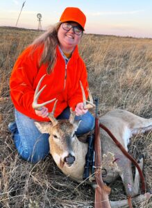 KBRB’s Stephanie Kinzie bagged the biggest buck of her hunting career, a 6×5 whitetail with a split brow tine, during opening morning of the firearm season in Boyd County.